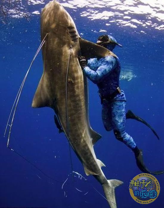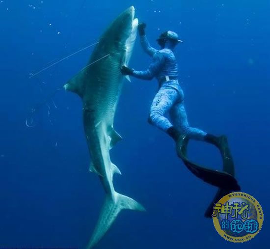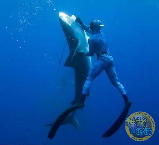 克拉森用矛枪射了7次,最终用匕首刺杀了这条虎鲨