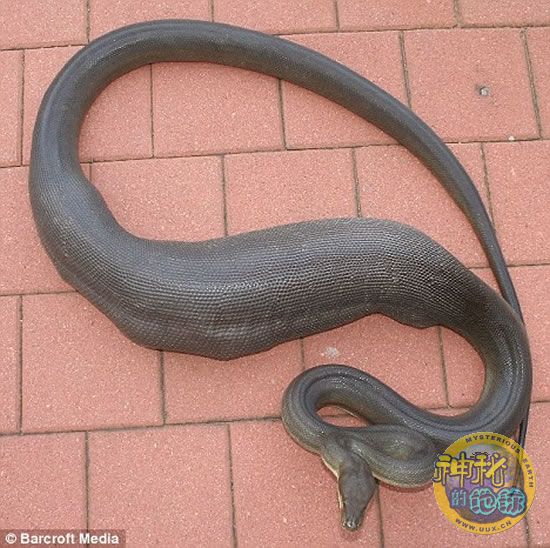 据英国《每日邮报》报道,当人们看到蛇腹部出现明显鼓起时,都会立即想到肯定有动物遭遇不测。在澳大利亚北部的凯瑟琳峡谷,一条3米长的巨蛇活吞下了一条6公斤重的宠物狗,腹部明显出现了隆起。据悉,狗主人帕蒂·本迪尼早上正欲给三岁爱犬“宾迪”喂早餐时,没有发现小狗的踪影。却在附近发现了这条蛇,帕蒂一下就知道了小狗的下落。这条3米长巨蛇属于巴布亚蟒,体重约16公斤,它一次可以吃下自身体重60%的食物;而被吞下的这只小狗属于马耳它猎狗与澳洲牧羊犬的杂交狗。