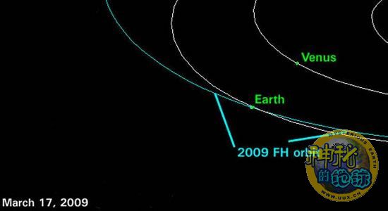 美航天局近地天体观测项目负责人唐·约曼斯表示,这颗小行星编号为2009 FH,它在美国东部时间18日8时17分(北京时间18日20时17分)到达距地球最近点,它不可能与地球相撞。