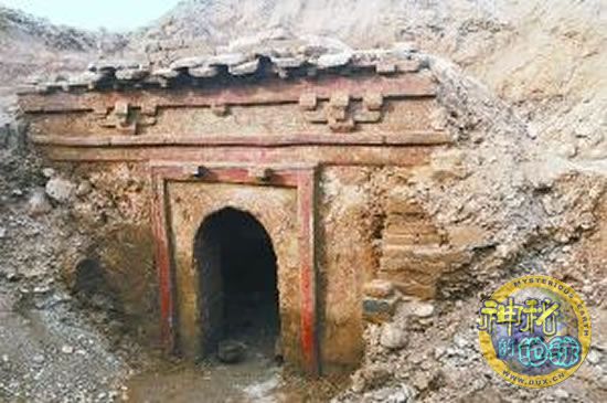 经过昌平区文物所工作人员多日的挖掘和整理,发现这是座辽代古墓。除顶端有缺失外,墓室的墓门、墙壁等结构保存完整。墓室后端砖砌一座须弥座式棺床,棺床正面绘有三朵栩栩如生的莲花图案。棺床上有零散的骨灰。南向的墓门为砖仿木结构,墓门上有制作精良的影作斗拱及檐椽、合瓦,完全仿制了地面建筑的规制。据文物所工作人员介绍,斗拱一般用在有尊贵身份人的墓穴中。而且这座斗拱制作工艺非常精美。据文物专家初步鉴定,该墓为辽代中早期的贵族墓穴。