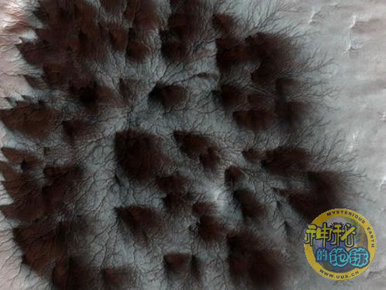 火星上的二氧化碳形成烟柱时,会形成被称作“蜘蛛”状的放射体