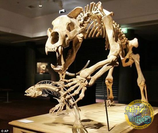 这具骨架展现了一只正在捕鱼的古洞熊
