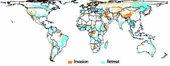 研究小组报告说,在未来的30年中,超过1/4的陆地的山火模式可能出现相对显著的变化。大约9%的陆地——包括斯堪的纳维亚半岛、美国西部以及中国的西藏高原——将出现森林大火上升的趋势。与此同时,大约19%的陆地——包括美国南部、非洲中部以及加拿大的大部分地区——只会有少量的山火。