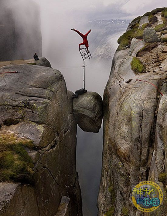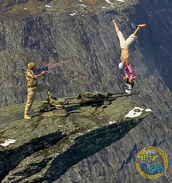 挪威艺术家悬崖边表演人体平衡绝技 来源: 神秘的地球 时间:2009年4月17日 10:04 挪威艺术家悬崖边表演人体平衡绝技 挪威峡湾1000米高空绳索上的自行车倒立 用椅子作为支撑点保持身体平衡 在1000米的悬崖上上演前轮大后轮小的脚踏车的人体平衡 4月17日,据英国媒体报道,29岁挪威艺术家埃斯基尔-罗尼斯巴肯在300多米高的悬崖上表演令人惊异的人体平衡。 无论是他脚踏自行车在两个山峰之间的绳索上,还是在悬崖上以前轮大后轮小的脚踏车保持平衡,罗尼斯巴肯的特技都像是在“刀刃”上表演。 来源:中国新闻网 上一篇 下一篇 TAG: 挪威 绝技 人体平衡 悬崖 艺术家