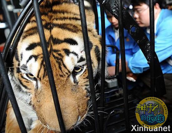 4月20日,云南野生动物园的工作人员为一只东北虎植入“电子身份证”。