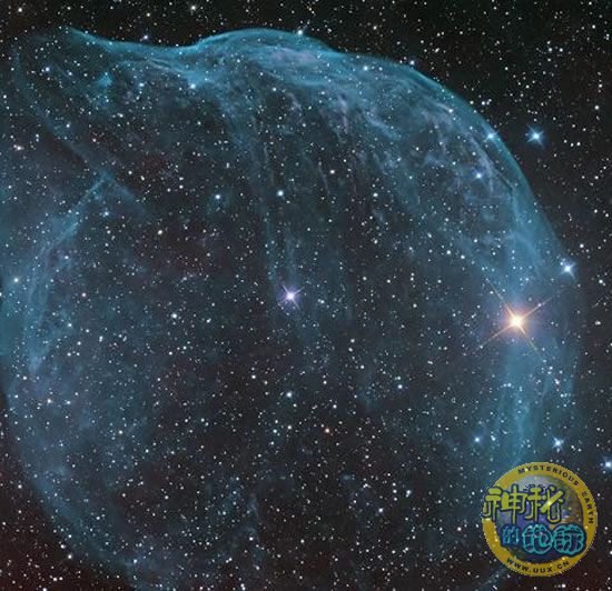 高曼博士说:“这个称之为S308的天体是一个“宇宙泡泡”,显示了一颗垂死恒星最后的气体喷射,从而形成巨大的气流以泡泡的形式扩散。它不是一个理想化的泡泡,因为它扩展的星际介质不完全相同,所以它呈现出独特的形状和图案。最终,这颗恒星将会爆炸成为一颗超新星。”