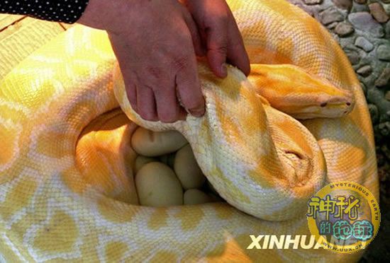 合肥野生动物园黄金蟒产卵 来源: 神秘的地球 时间:2009年4月30日 09:57 4月25日,合肥野生动物园的工作人员查看黄金蟒产下的卵 合肥野生动物园一条人工饲养的黄金蟒在与雄性黄金蟒配对成功后首次产卵,共计34枚。这条黄金蟒今年6岁,体重30公斤。黄金蟒是缅甸蟒蛇的白化突变种,全身呈黄白色,体表布满多个金黄色斑块,是非常珍稀的濒危动物,其成体可以长到7米,目前主要分布在印度、斯里兰卡、缅甸和泰国北部等地。 新华社 上一篇 下一篇 TAG: 产卵 野生动物园 黄金蟒