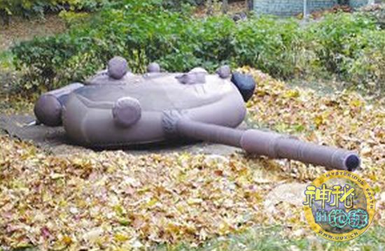 由于这些“山寨版武器”造型异常逼真,即使100米开外也难辨真假。公司实验室负责人尤利·斯坦帕诺表示:“比如充气式坦克的炮塔甚至可以左右转动,此外还配备有附加的油料箱。所有这些,都与真正的坦克一模一样。”