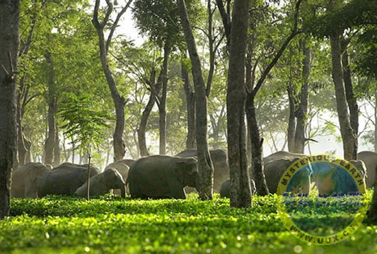 Trained elephants chase wild elephants at Tarajuli tea estate 153 miles (245 kilometers) east of Guwahati in the northeastern Indian state of Assam on November 30, 2005.