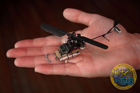 参与研制工作的科学家们设想,这种微型直升机可以配备给在前线作战的士兵,这样他们就可以对整个战场环境随时进行侦察和了解,提前获知周边存在危险。微型直升机携带有微型相机,它们可以适时传回各种图像。美国军方也正在培育体内植有电脑芯片的“半机械昆虫”,它们背上安放有侦察装置,可被遥控按照人的想法四处飞行。报道说,美国政府和私营实体的一些人承认,他们正在研制这种侦察器。“半机械昆虫”可以跟踪嫌疑人、引导导弹命中目标或在倒塌建筑的各个角落搜寻幸存者。