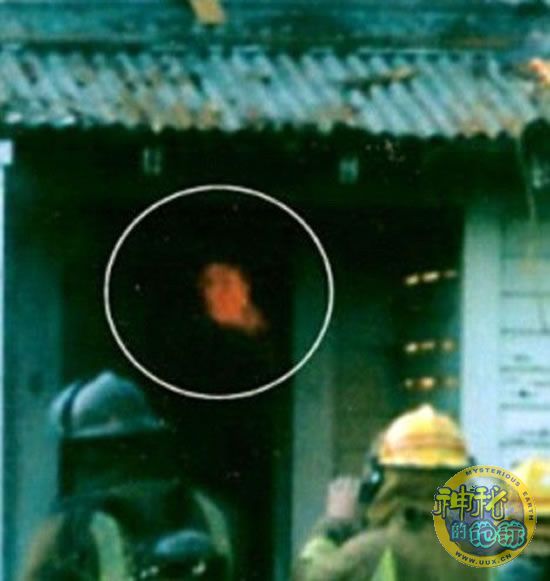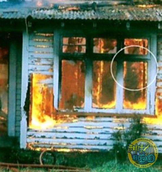 这两张照片是在一次消防演习中拍摄的,人们在这些照片中都发现,在一所燃烧的房屋里,有一个奇怪人头在漂浮。有人说,如果“鬼影”只出现了一次的话还可以说是火焰和烟雾造成的幻影,但如果两张照片里都有的话那就很难解释了。