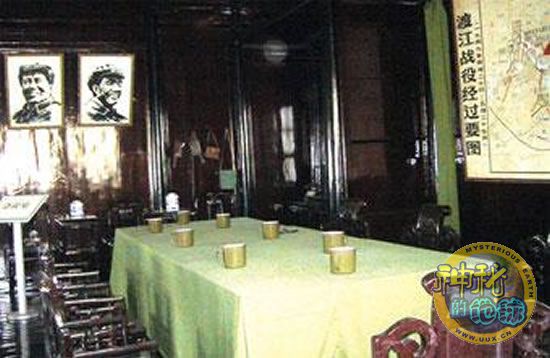 工作人员特意强调,此地仍然保持着当年的旧模样。清式小楼二楼是海军诞生及渡江战役指挥部作战指挥室,张爱萍将军正是在此处,宣布人民海军的成立。记者看见,指挥室内有铺着军绿色桌布的长方形会议桌、一按滴滴作响的电报台以及黑旧老式的电话机,墙上挂有毛主席和朱德总司令两位伟人的画像,一张布满大红箭头的作战图,描述着当年那场气势恢宏的渡江战役。
