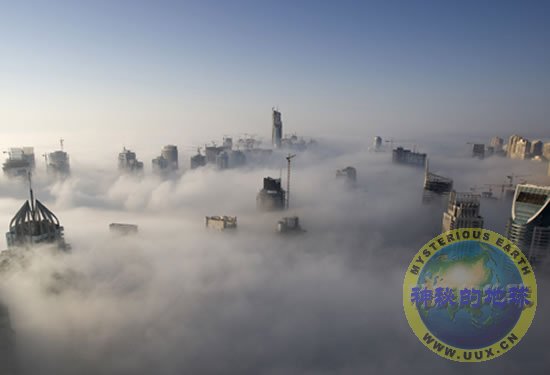 Dubayy (Dubai), United Arab Emirates, November 18, 2007—Thick fog envelops the Dubayy Marina.