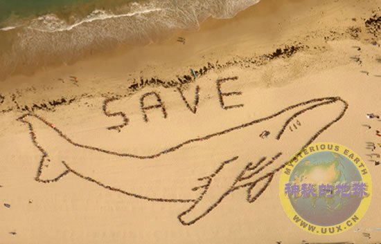 Bondi Beach, Australia, November 18, 2007—Hundreds of activists form the shape of a humpback whale on Sydney's most famous beach.