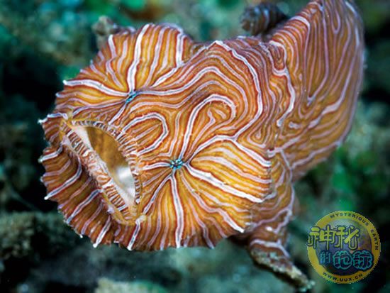 迷幻躄鱼学名为“Histiophryne psychedelica”。它的奇特之处在于它不仅仅善于隐藏,还可以通过喷射推动力来逃避危险。迷幻躄鱼的皮肤呈胶状,显现肥胖、肉质厚而松软,它的皮肤上覆盖着白色条纹,这些白色条纹是从眼睛呈放射状向身体蔓延。这种白色素可以使它的皮肤色彩更加绚烂多彩,更便于混入海底五颜六色有毒的珊瑚丛中寻求庇护。迷幻躄鱼在其面部的外轮廓可能有一种感官结构,就如同猫胡须一样具有灵敏的感知能力,这种鱼通过面部外轮廓感官结构能够感触到一些海底洞穴内部石壁的状况,便于在珊瑚礁之间狭小的空间进行探索。这种鱼的下颚长着2-4排不对称的小牙齿,可用于咀嚼更小的鱼类,虾以及其他海洋生物。