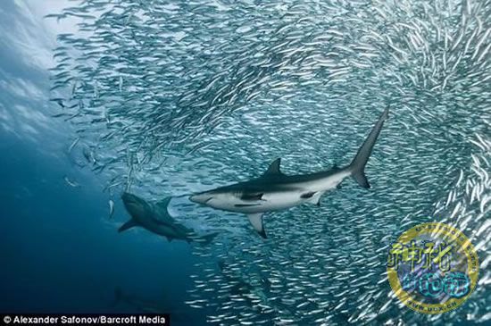 鲨鱼与壮观美丽沙丁鱼群
