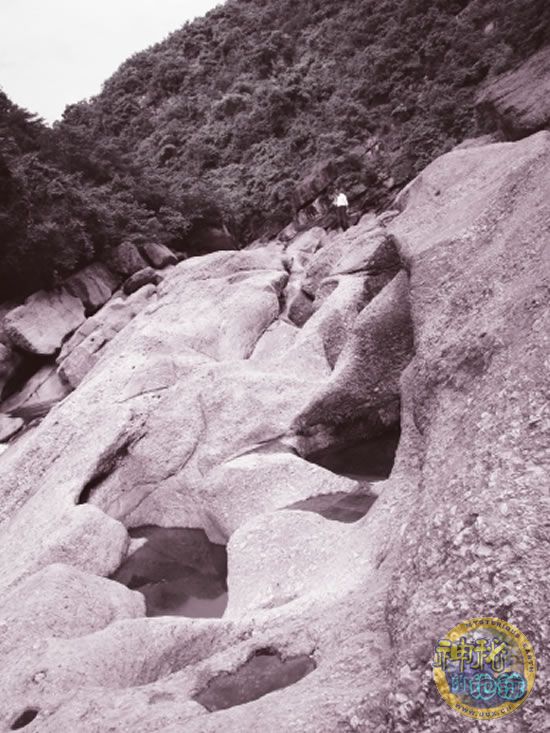 专家推测,冰川运动在这里形成了一个很大的冰床,冰水滴水穿石,形成一个个圆圆的冰臼。 文/图 张发政 高志农