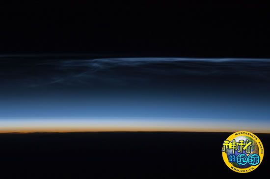 2008年8月28日早上3时20分,国际空间站宇航员拍摄到的夜光云。