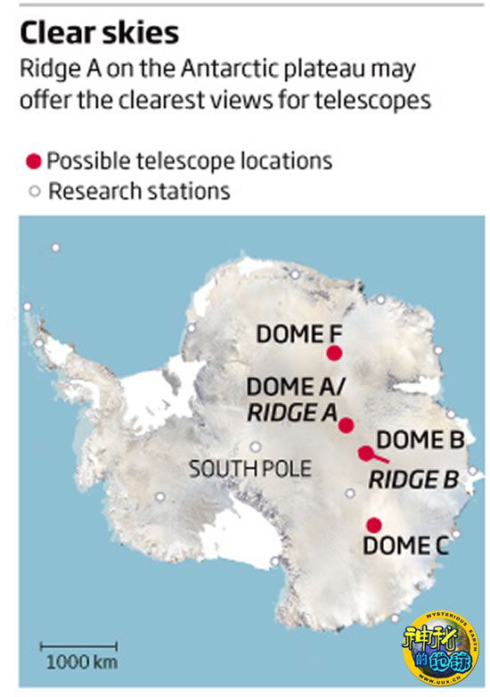 据英国《新科学家》杂志报道,澳大利亚悉尼新南威尔士大学的迈克尔·亚史雷(Michael Ashley)和他的同事们,声称在南极一处被命名为Ridge A的地方找到最晴朗的天空,但是要利用这片天空,他们必须在地球上气候最恶劣的地方架设望远镜。