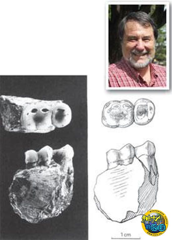 爱荷华大学人类学家Russell Ciochon与龙骨坡发现的颚骨化石